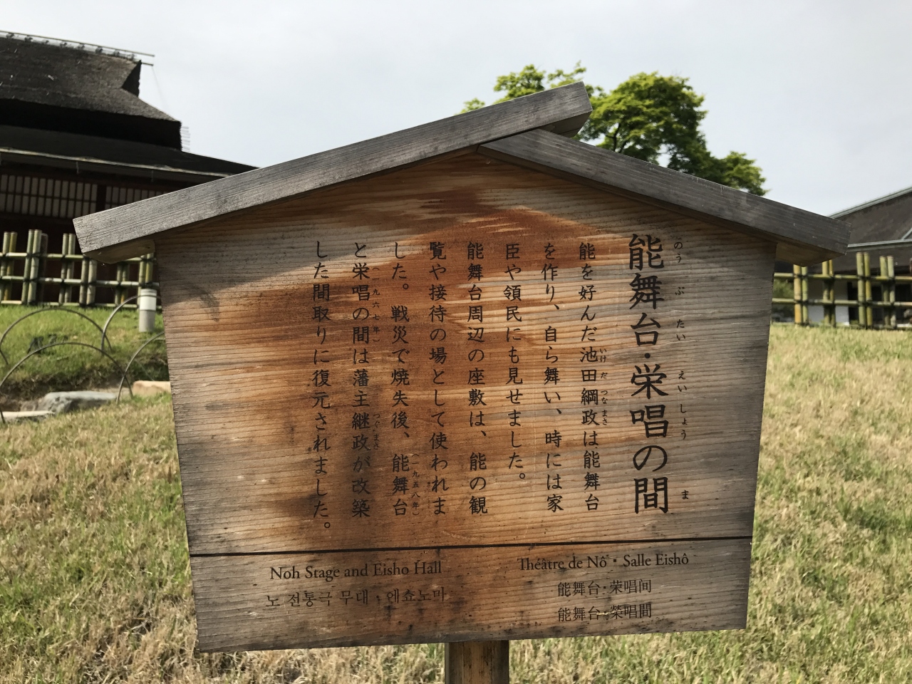 GW中に後楽園に訪問。正門から入ってすぐのところに能舞台がありますが、囲いで囲まれていて、内部を見ることができませんでした。イベントがある日などは能舞台がオープンになるようで、そういった日を狙うのが良いかもしれません。外観を眺めることしかできないので、解説版を読んで、すぐに移動しました。
