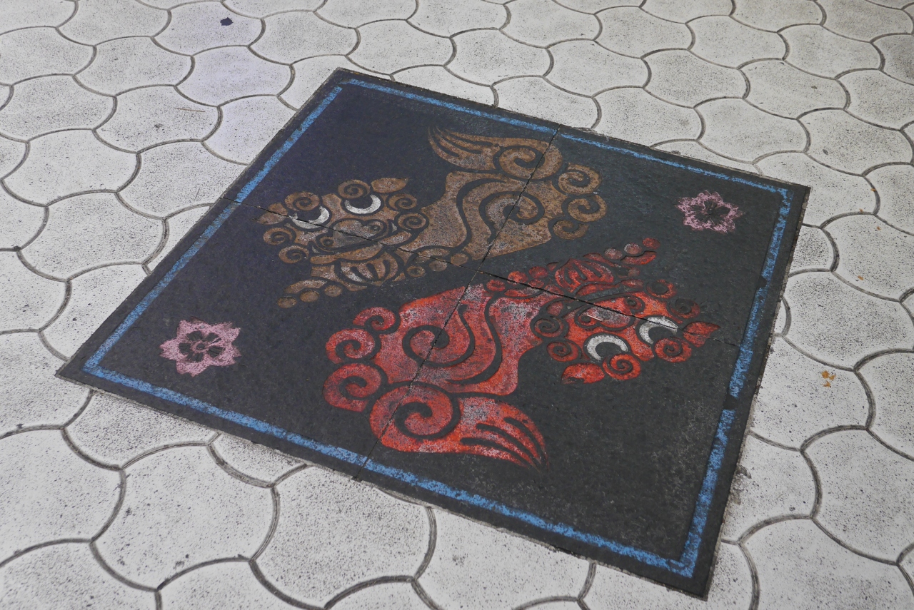 通路路面には沖縄らしいデザインのタイルが埋め込まれ、これを見て歩くだけでも沖縄の雰囲気を味わえます。