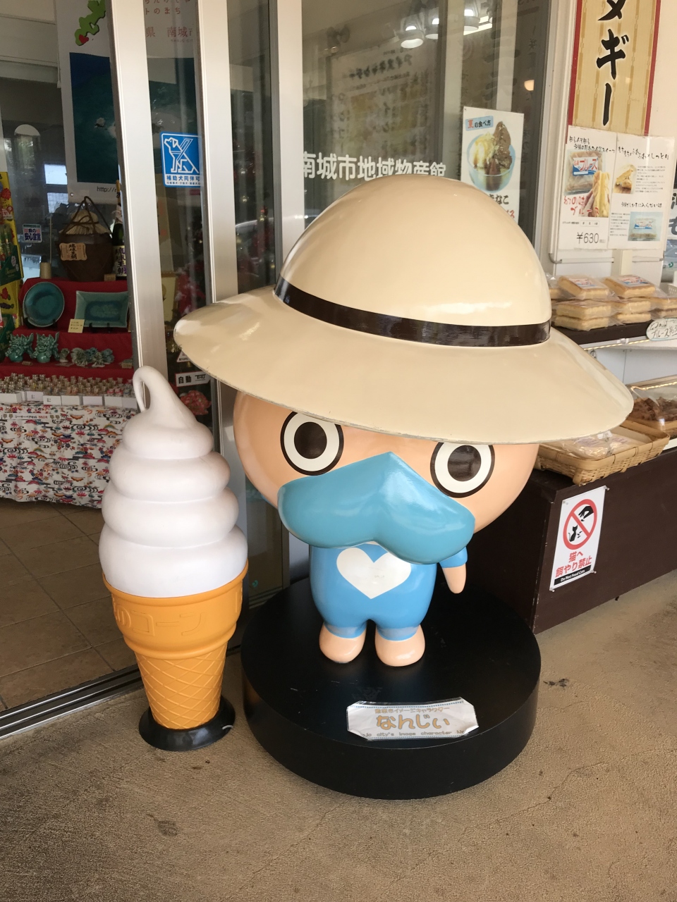 中では、沖縄土産が幅広く販売されているほか、「海ぶどうアイス」という珍しいアイスもありました。2階にはカフェもありました。