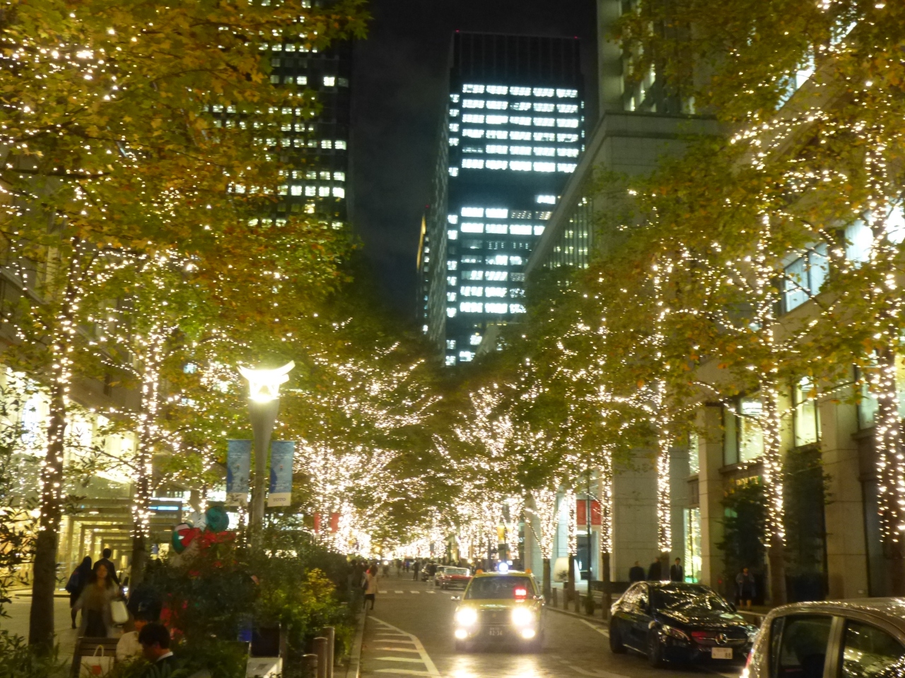 ビルの間のまっすぐな道の並木に飾られたイルミネーションは確かにキレイだったです。でも最近はあちこちイルミネーションばやりで、ネットやテレビで見慣れてきたから、ここのイルミネーションをみて感動するほどではなくなってはいる。