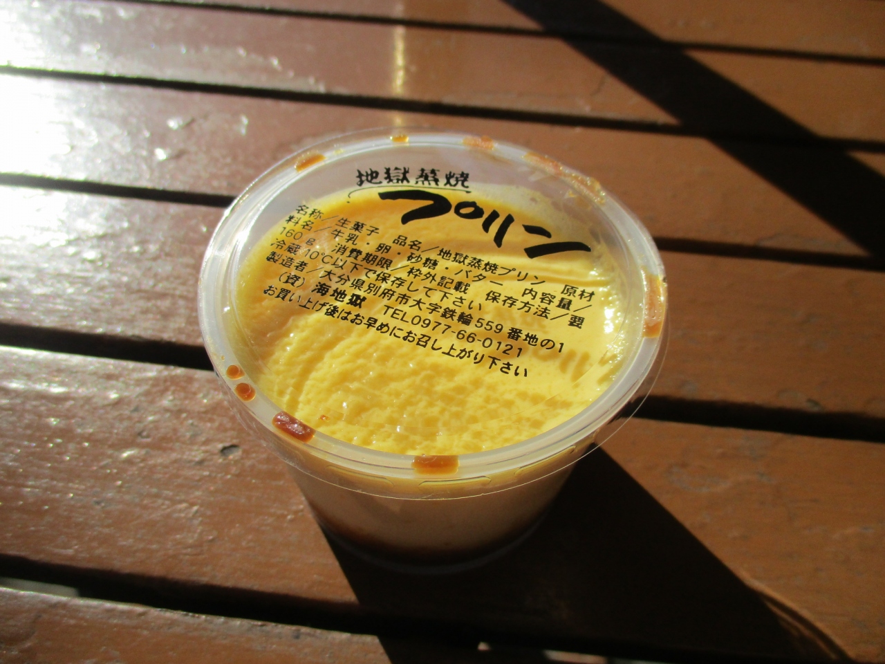 別府の地獄巡りをしているときに、鉄輪温泉の海地獄の売店で多い日で1日1000個売れるという地獄蒸し焼プリンを食べました。