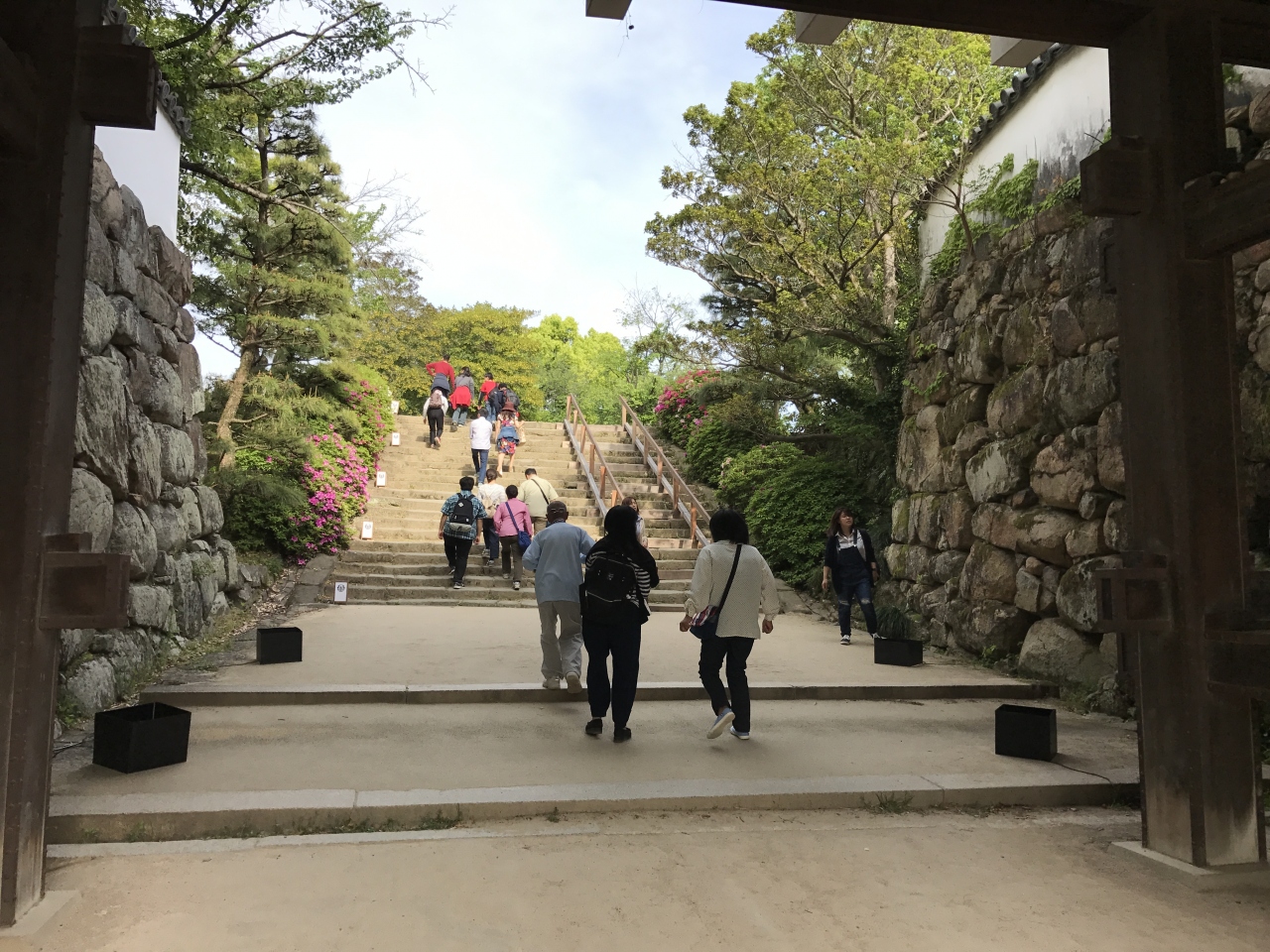岡山城の石垣は大きな石を組み合わせて作られた立派なものです。月見櫓や岡山城までの階段など、いたるところに立派な石垣を見ることができます。お城の土台にも石垣が使われていますが、復元されたお城なので、門などの石垣の方が立派で見ごたえがあります。