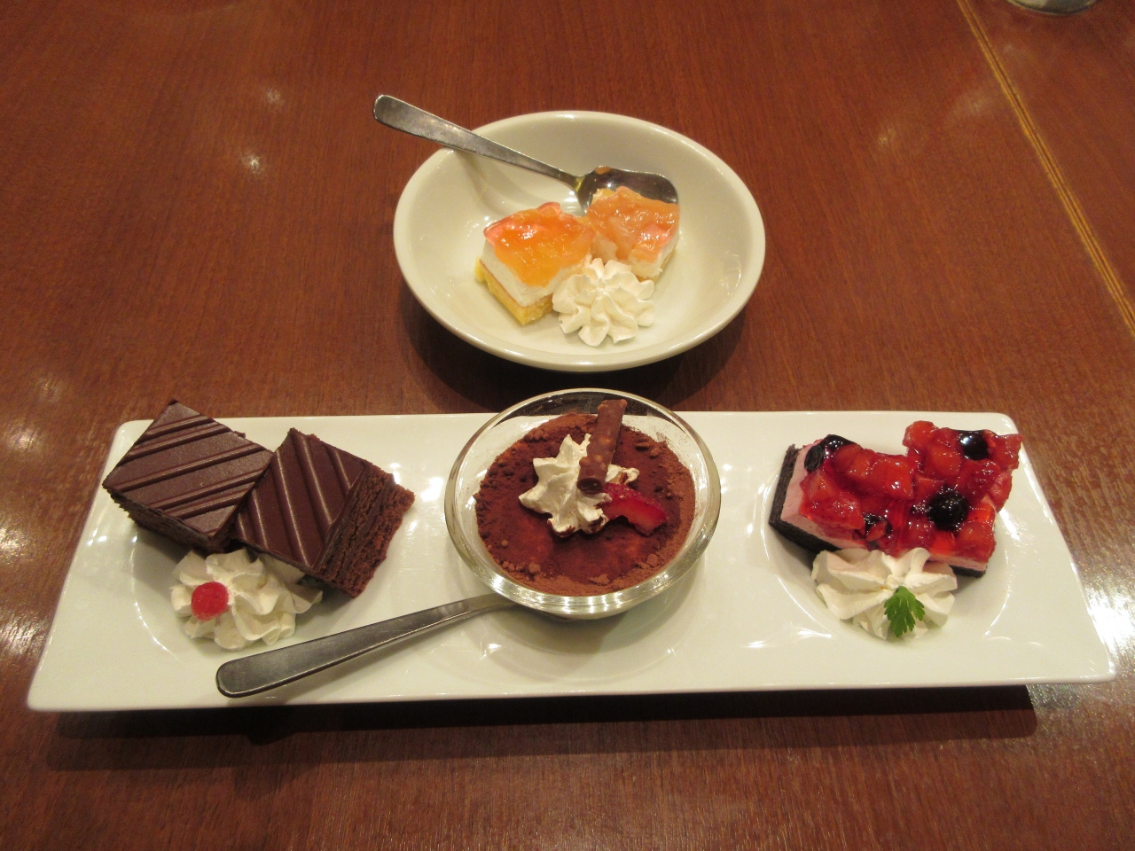 平日昼食で利用しました。期限限定のヤマダポイントを使っての利用でした。平日だったので昼時でもすぐ席につけました。ピッツァセットと3種デザートセットを注文し、ヤマダレシートで貰った引換券でデザートが1つ付きました。ピッツァの生地はかなり薄くてスナックを食べているような気分でしたが、味はよかったです。パスタは程よい硬さで、海老のスパイシーカルボナーラは濃厚で、海老とアボカドのフレッシュバジルのジェノベーゼは少し塩辛かったもののソースがたっぷりでした。デザートは思った通り小さかったけれども美味しい方でした。おまけの小さなケーキも食べられてよかったです。次回パンケーキを食べてみたいと思いました。
