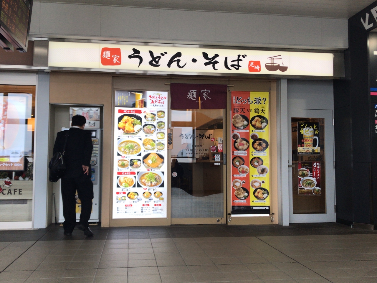 JR西日本フードサービスがやっている駅構内の立ち食いそばの麺屋尼崎駅構内店へ