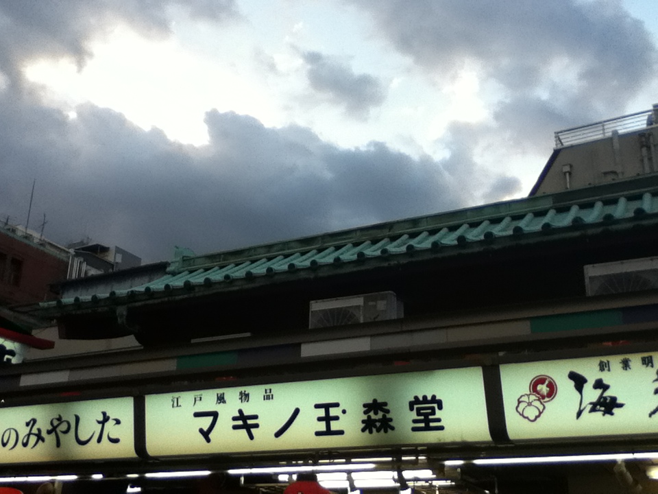 仲見世通り沿いの江戸風の小物雑貨店。店頭には白い看板が掛けられている。数人のお客さんがいた。お勧めの点は、間口は狭いが店頭の商品が並び入りやすいこと、店内は広くないが棚やテーブルには風鈴、人形、千社札、名前シール、キャラクター商品、名入木札などが沢山並んでいること、これらは江戸風のデザインや色合いであり特に浅草や東京旅行のお土産を買いたい人にとっては訪問する価値があることである。