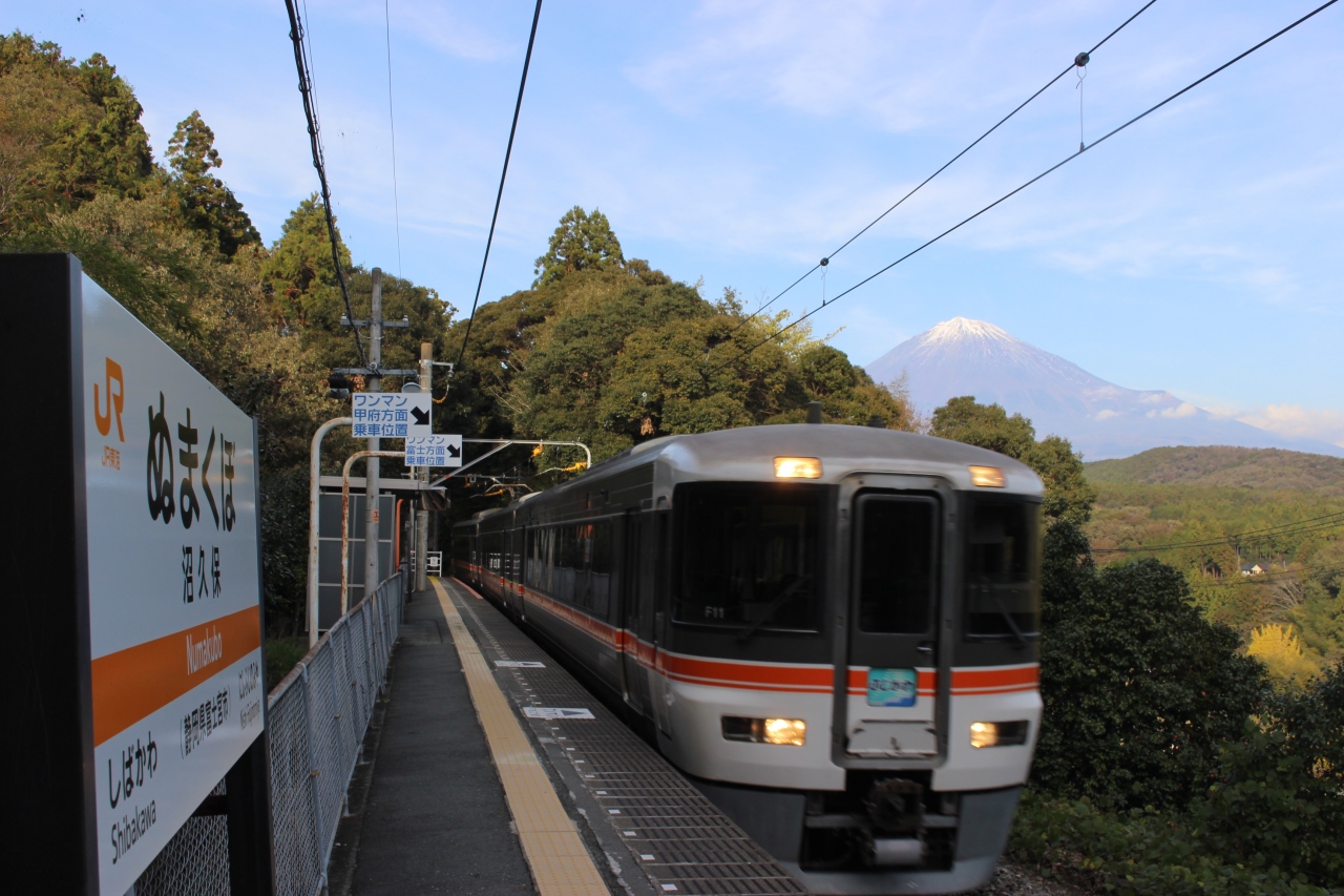 それでも甲府から富士に向かうと、沼久保駅あたりで美しい富士山が見えてきます。