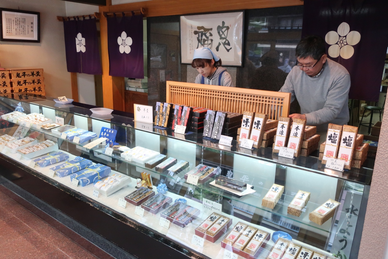 日光市街のメインストリート沿いには三ツ山、吉田屋そして鬼平の羊羹点が近い所に3軒あります。その内駅に近い所にあるのが鬼平の羊羹本舗。鬼平とかいて「きびら」と読むそうです。