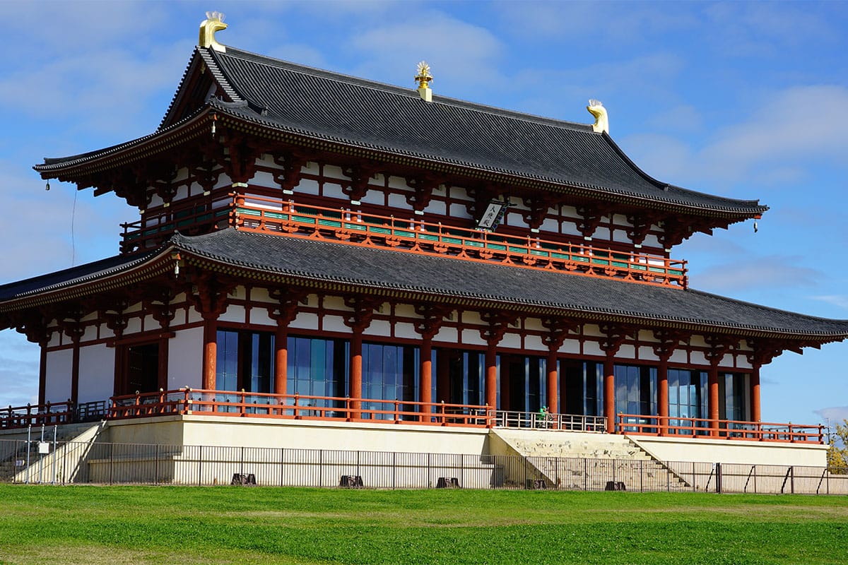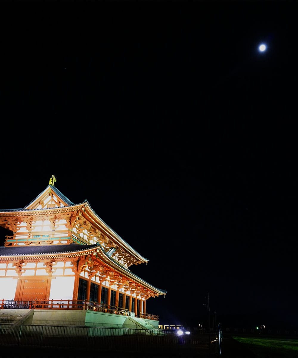 昼は内部が公開されており、高御座や実物大の鴟尾の複製品などが展示されています。夜は朱雀門と同様にライトアップされ、なかなか幻想的で素敵でした。夜もオススメです。ボランティアのガイドさんにわかりやすく解説していただき、勉強になりました。
