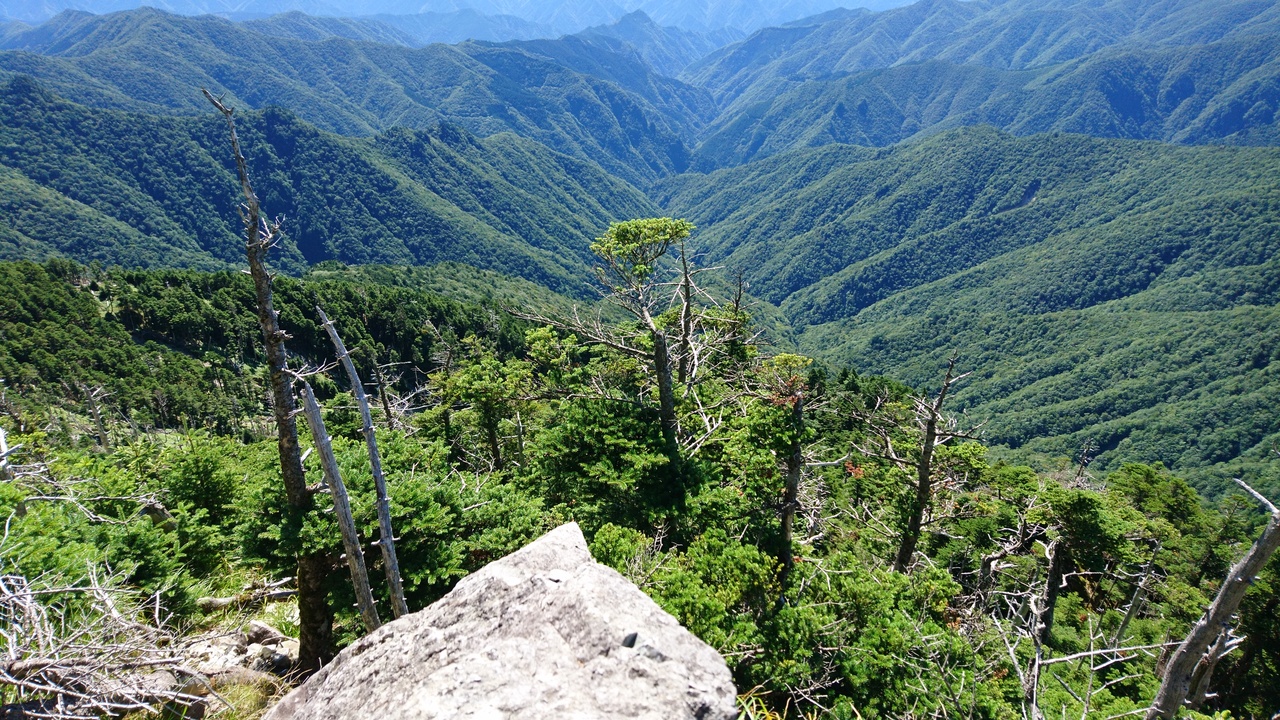 弥山小屋から分岐して八経ヶ岳に向かいます。登り返しがあり。頂上に着くとなんとも素晴らしい景色。