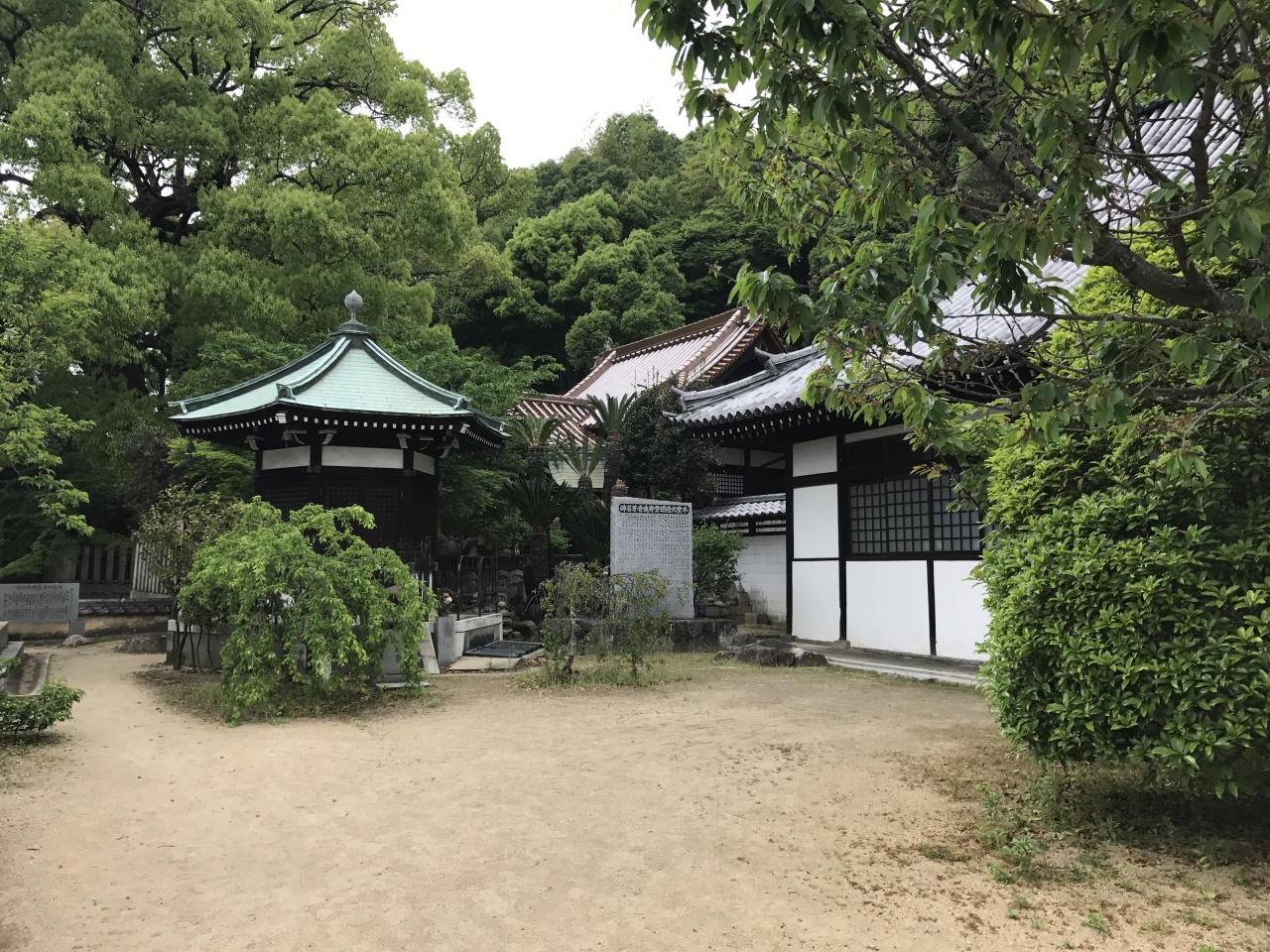 御袖天満宮をお詣りして、すぐ隣にあったこちらのお寺も見学しました。小さなお寺ですが、平安初期にはすでに開かれていたお寺だそうです。敷地内には小さなお堂があって、社務所兼住宅のような建物がありました。やや寂しい感じのお寺で、誰とも遭遇しませんでした。