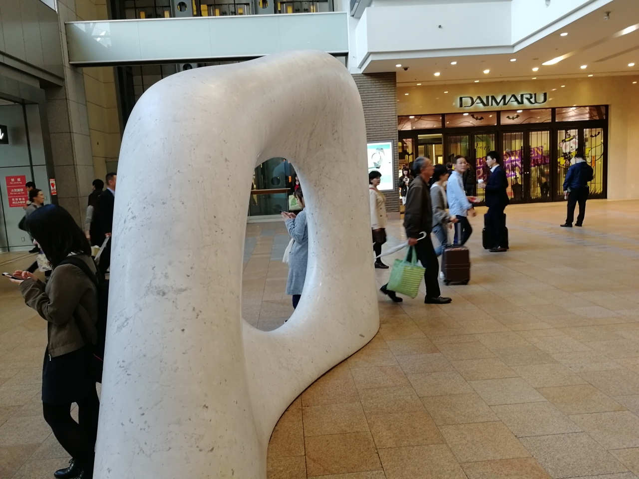 札幌駅構内にあるオブジェです。周りの雰囲気になじんでいるというか、あまり気に留めてみていく人はなく、たまに待ち合わせの目印になっている感じのスポットです。作品自体は北海道出身の有名な彫刻家のもので大理石でできています。精巧なデザインではなくすっきりした印象です。
