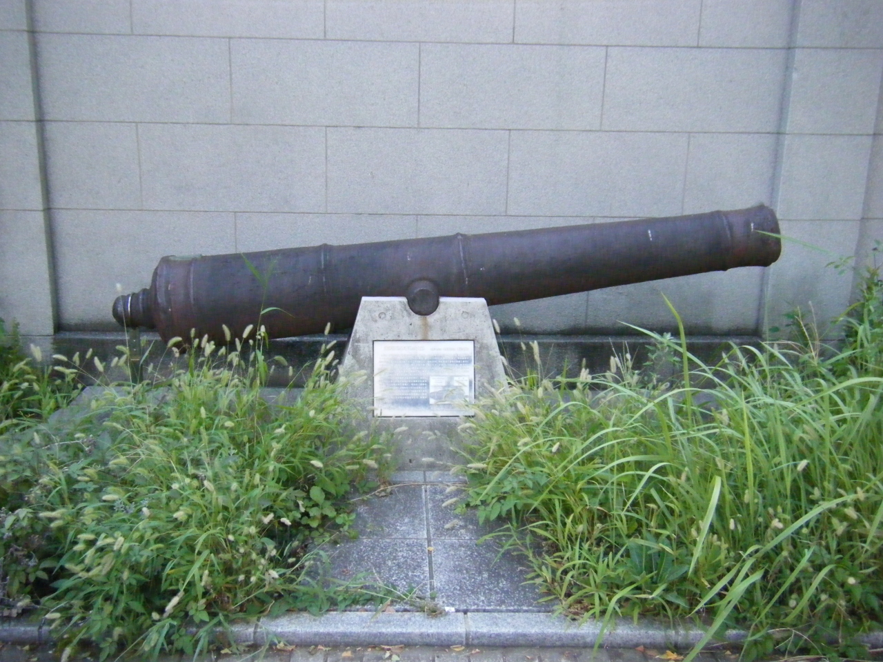 大桟橋の入口近くにある開港記念広場の一角にこちらの大砲は置かれています。かなり古めかしい大砲ですが、それもそのはず幕末期の頃の大砲だそうで大砲を錨に作り替えるために置かれていたところ、関東大震災で埋没していまい、近年になって発掘されたそうです。広場の片隅に置かれているため見逃してしまいそうですが、幕末期の大砲を近くで見ることができますので足を運んでみてはいかがでしょうか。