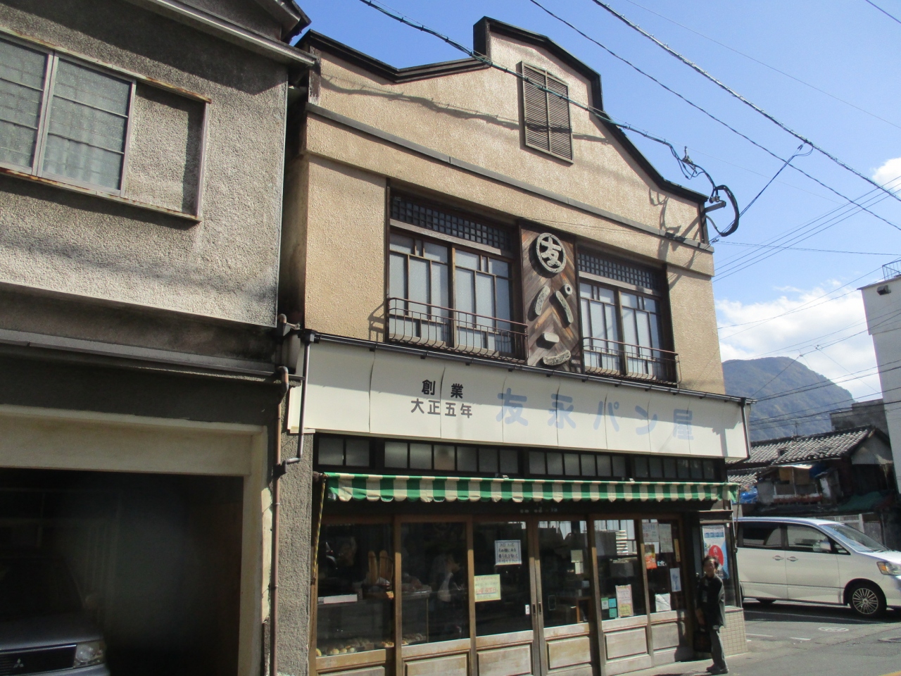 いつも行列の絶えない大正5年創業のパン屋「友永パン屋」だそうですが、訪れたときは空いていました。