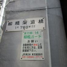 JR神田駅北口改札から秋葉原方面に神田ふれあい通りを進み東松下橋架道橋、平永橋架道橋の先にある柳橋架道橋に歩いて10分ぐらいで着きます。柳橋架道橋は靖国通りと柳原通りの間にある通りに架かってます。この辺りは薄暗く特に観光要素もないですので通り過ぎる程度で十分だと思います。浅草橋の柳橋とはかなり距離があり離れてます。