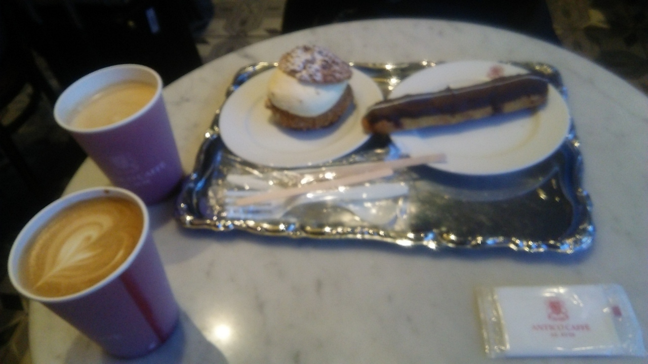 六本木ヒルズ3階にあるカフェ。入り口はちょっと高級そうなつくりだが、セルフサービス方式で、コーヒーは300円台とは言え、トレイが金属だったりちょっとうれしい。シュークリームがおいししかった。奥の方にはソファー席もあった。