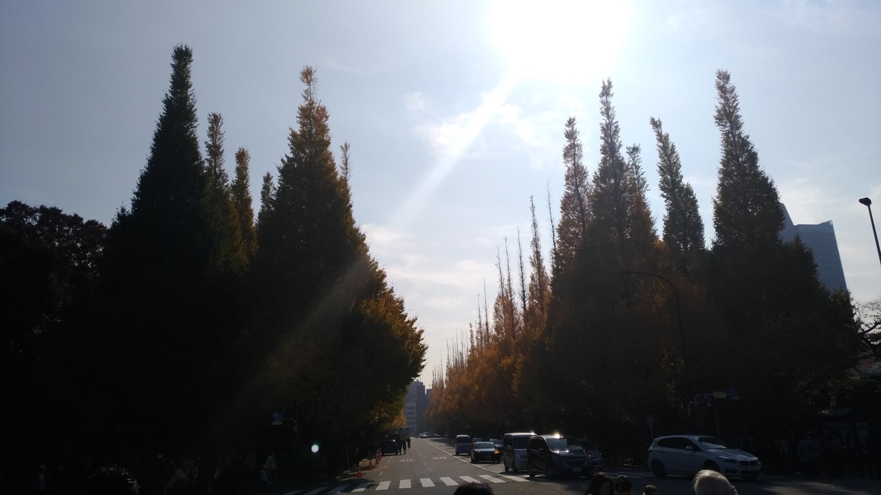 いちょうがきれいな季節にはじめてあるきました。普段は野球を見るときぐらいしか歩いていかなかったもので。