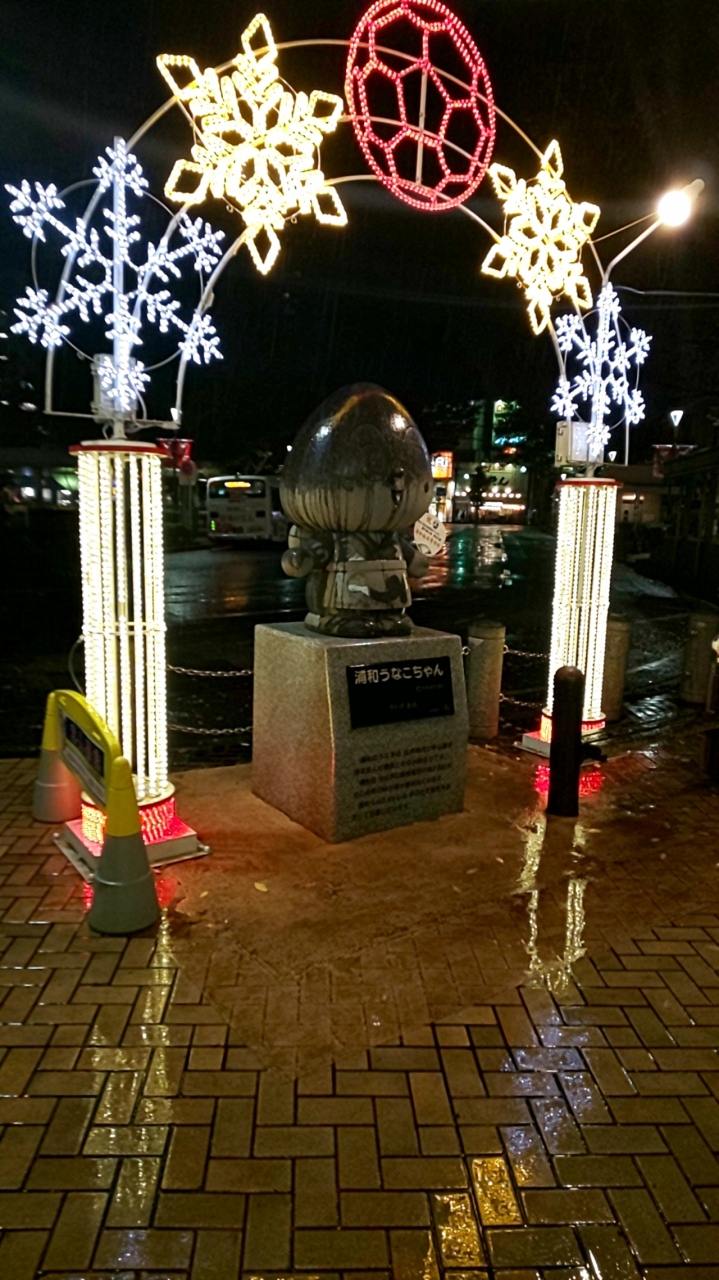朝晩はずいぶん寒くなって来ましたね。いつも使ってる浦和駅。今日は久しぶりにうなこちゃんの顔を見に行きました。大分寒くなったのにまだ団扇を持たされていました。後ろのライトアップは凄く綺麗でした。