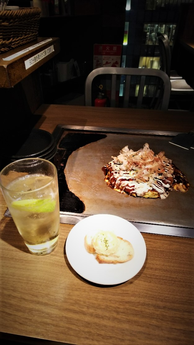 17時以降はテーブルチャージ(お通し)がひとり500円かかります。また、ひとり1品&1ドリンクの注文がマストです。私はここのお好み焼きが好きなので、これまでもランチで何度か利用していますが、ディナータイムは今回が初めてでした(夜は高い印象です…)。