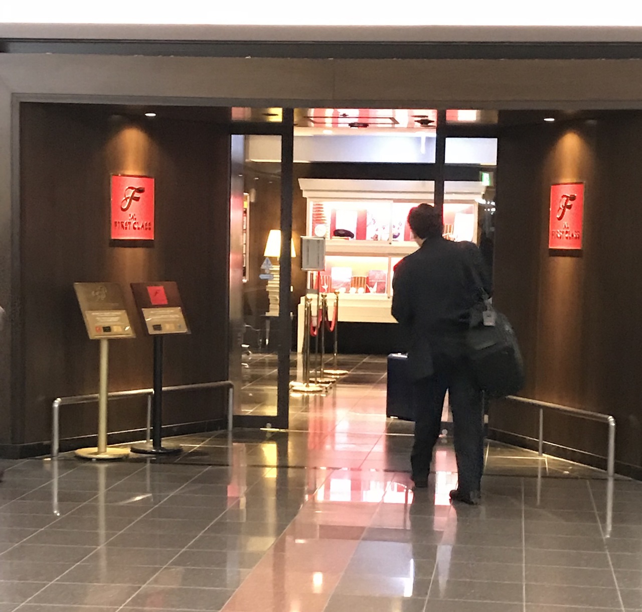 やっとFクラス専用でここのラウンジ直結の手荷物検査場を見つけたのですが、さすが朝は社畜だらけで、普通の手荷物検査場よりもこっちのが混んでました・・・。