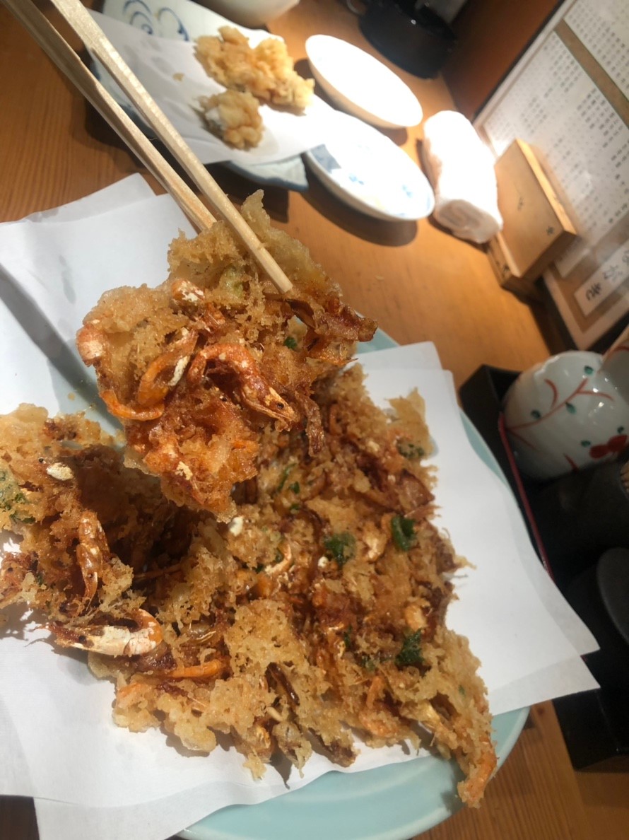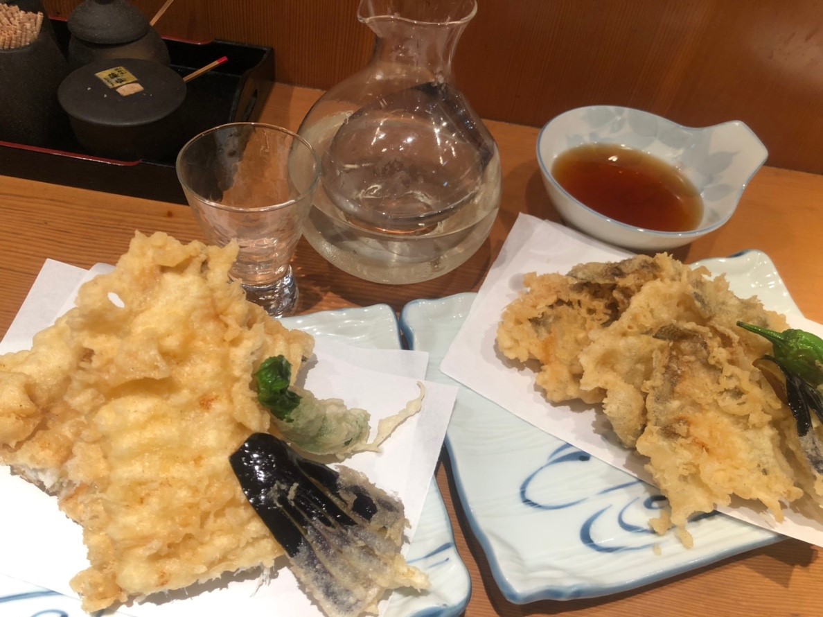 とりあえず飲み物とマグロの角煮で時間を過ごし食べたかった穴子の天ぷらそして季節の天ぷらはぜ、お店のお勧めの多摩川の河口で獲れる「ぼさえび」の天ぷらを美味しくいただきました。訪れて待った甲斐がありました。