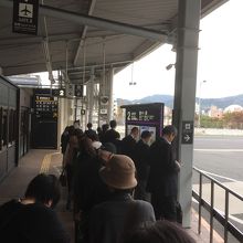 広島駅から路面電車に乗り、紙屋町西で降りると、デパートのそごうがあり、そのビルの3階が乗り降り場になっています。広島の市内観光をするには、原爆ドームや平和記念公園、さらには、広島駅城も近くて、ここを利用するのが便利です。いろいろな方面にもバスが出ています。