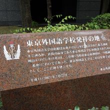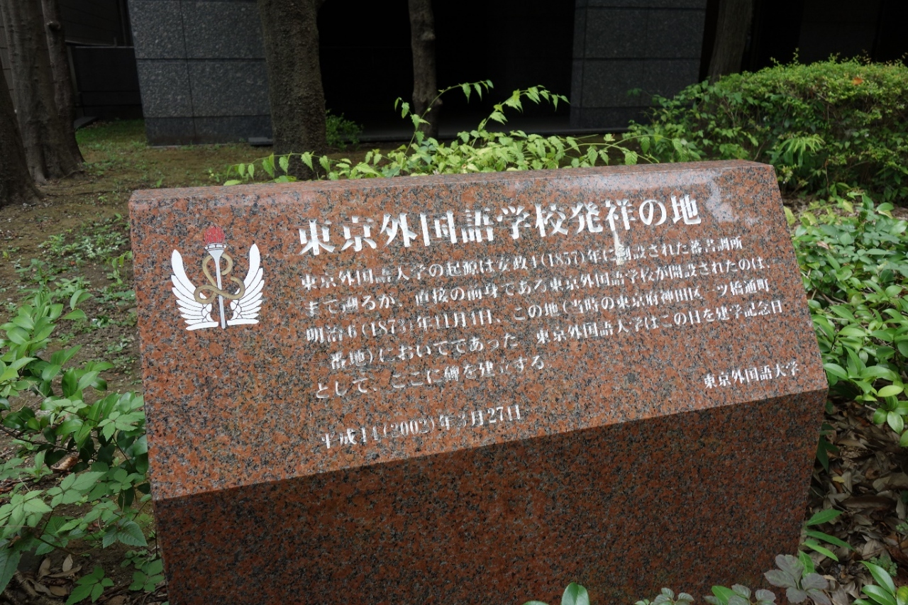 白山通りを歩いていた時、学術総合センターの敷地の南側にこちらの石碑が置かれているのを見つけました。東京外国語学校は後に東京外国語大学として発展していったそうです。この地域は大学などの教育施設が多く集まっていて、昔から学びの場として知られていた場所なのだと再確認できる碑でした。