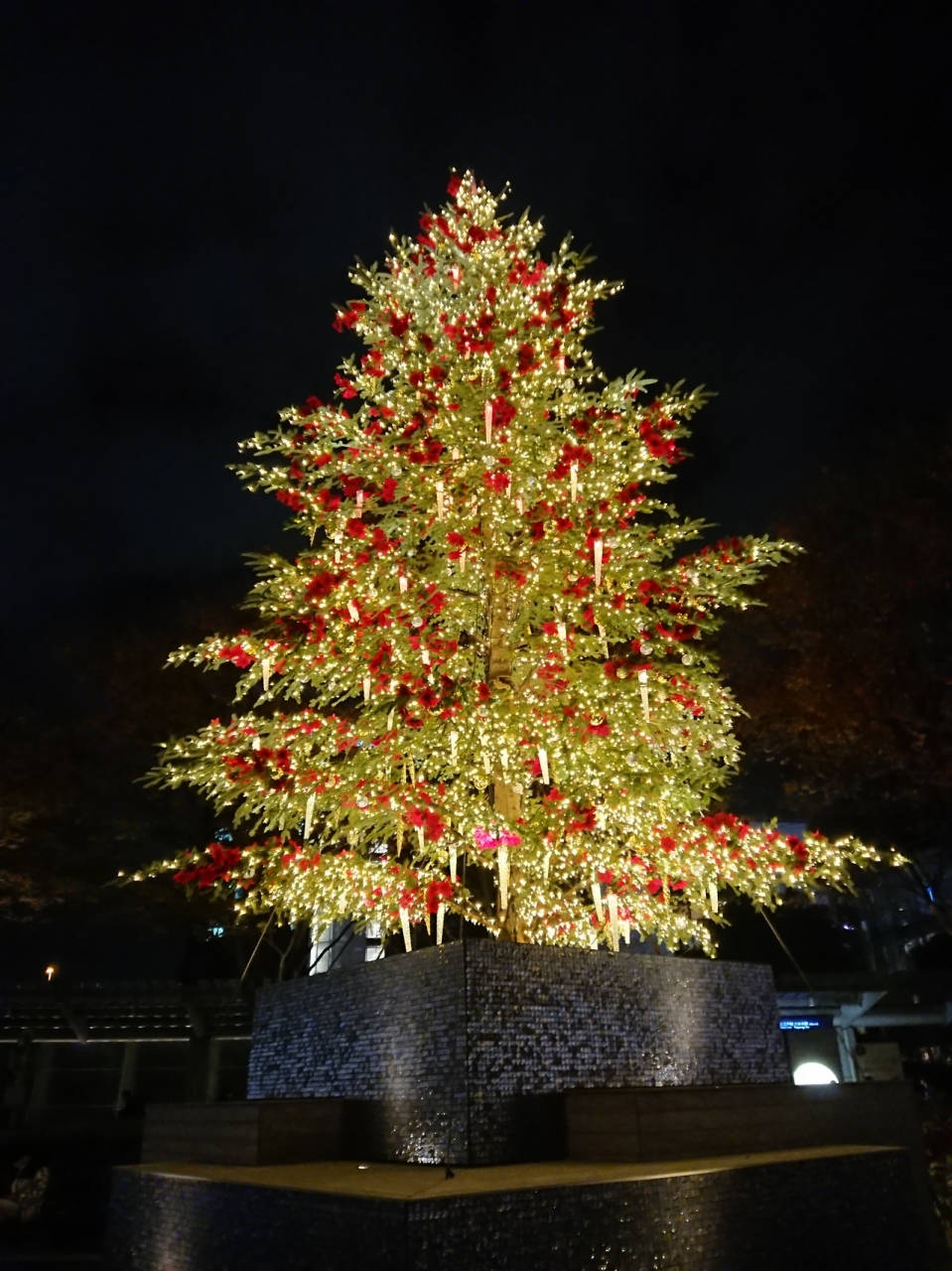六本木ヒルズの入口にある巨大クモ・ママンのすぐ近くにあるクリスマスツリーは、「王道のクリスマスツリー」と言った暖かみのある色合いで、とても綺麗でした。