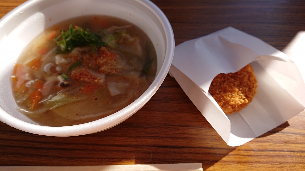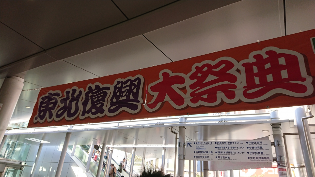 中野駅周辺には東北グルメが楽しめる屋台が並んでおり、牛タンやせんべい汁などおいしいものがいっぱいでした。