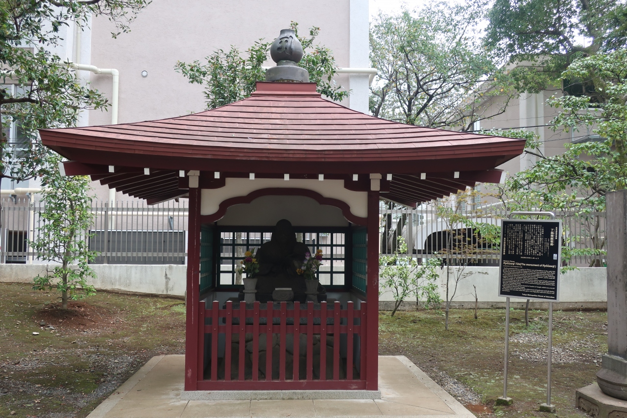 上野寛永寺の境内、本堂の右側には幾つかの石碑等の記念碑があります。了翁禅師塔碑はその一つです。天和2年に勧学寮と言う学問所、大蔵経を収めるる経蔵を建立した立派なお坊さんだそうですが、まったく知りませんでした。石碑にの隣には了翁禅師の坐像が東屋の下に祀れらています。