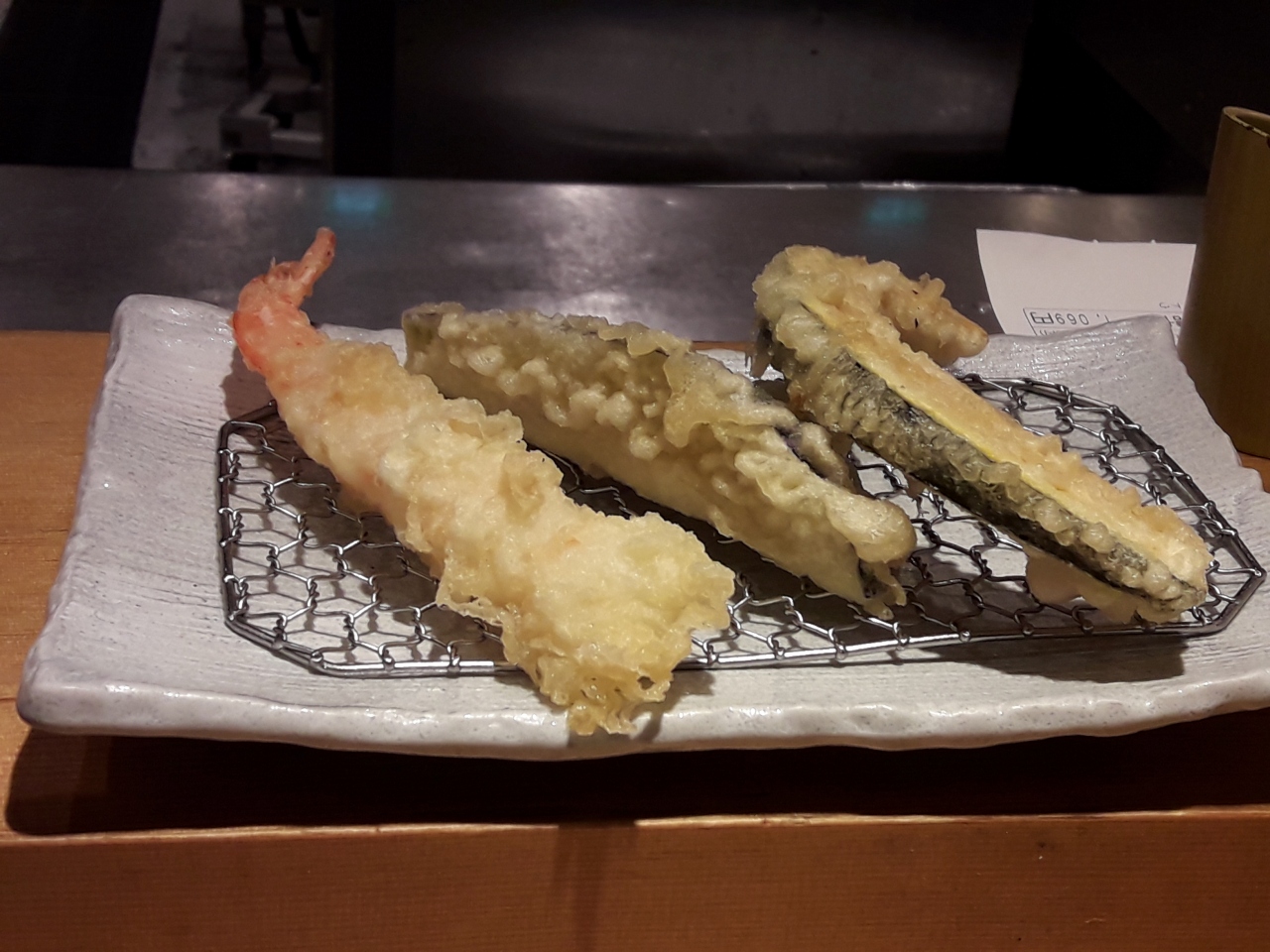 天ぷらの種類によっていくつかの定食があり、注文すると揚げたての天ぷらを何種類かずつ持ってきてくれる形です。(関東で見かける「天ぷら たかを」と同じ感じ)