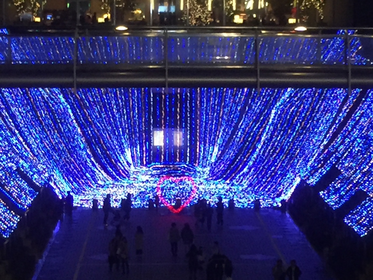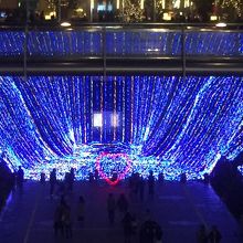 横浜ランドマークタワーのお膝下にあります。青い電球か約10万個もあるそうです。真ん中の赤いハートはフォトスポットとなっています。2018年11月14日から2019年は2月17日まで16時から23時の時間帯に点灯しています。とても幻想的で素晴らしいです。
