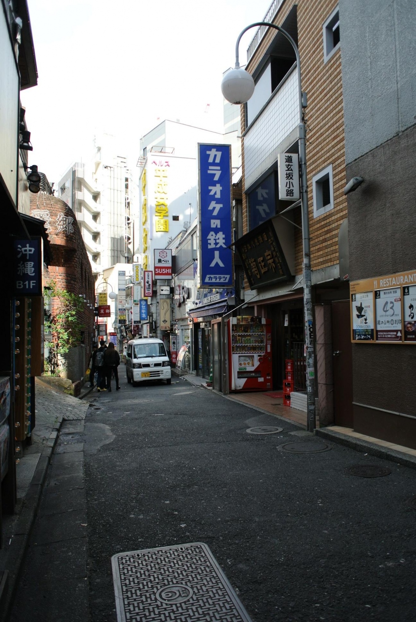 道玄坂から入った細い道路です。両サイドには飲食店がたくさん並んでいました。100円回転寿司の魚べいがあってリーズナブルに食べられる良いお店を見つけてラッキーでした。他は飲み屋さんが多い印象で夜一人ではあまり歩きたくない印象を持ちました。