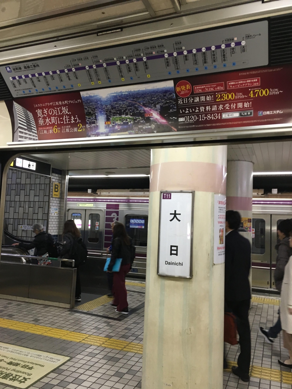 大阪市営地下鉄谷町線。官庁街なども通るせいか、御堂筋線並に混雑しています。本数も多いのですが、それでも混雑する辺りやはり都会ですね。乗換通路なども問題なく使えますが、御堂筋線方面に乗り換える時にはものすごく混雑するので大きな荷物を持っているとちょっと大変でした。