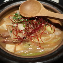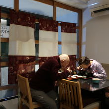 青葉台駅から車で10分程の鴨志田交差点から北に150m程坂を上がった左手に飲食店が並ぶ一角にある蕎麦店です。通された席は入口近くのテーブル席。奥にも席があります。