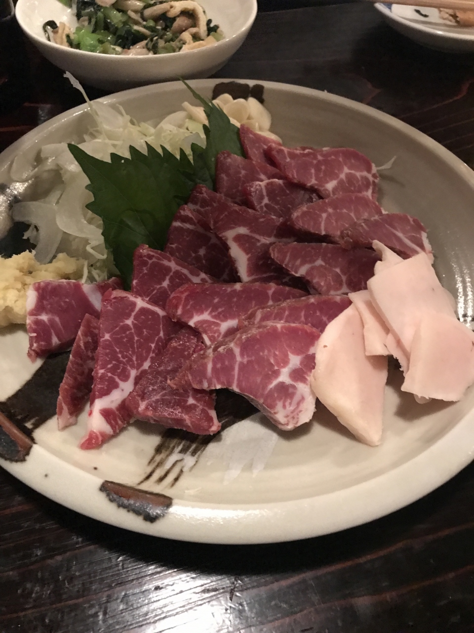 熊本の三井ガーデンホテルから近いところにある居酒屋さん。店内はカウンター10席ほどとテーブルが3客ぐらいなので、4名以上の入店は厳しいです。どちらかというと2名がベスト。カウンターには大皿でできたおばんざいがおかれ、どれもとれもおいしいです。カウンターの居心地がいいので、1人での来店が一番良さそう。お通しは湯豆腐と最高の出だし、ビールは瓶のみとこれも通。馬刺しはやや高いが注文。味噌豚、厚揚げ、最高のポテトサラダ、美味しい焼酎