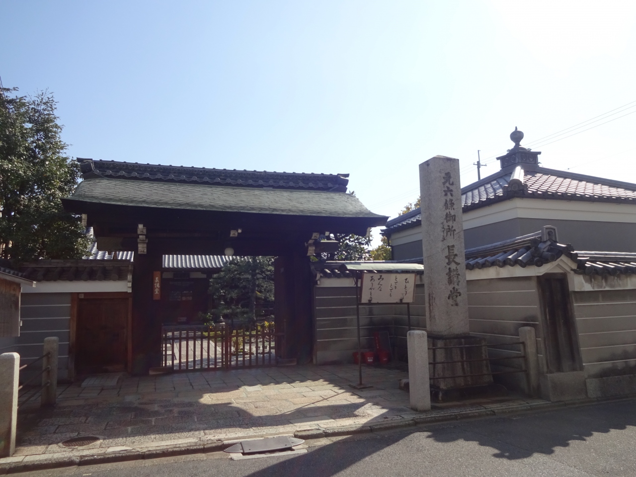 山門前に背の高い石柱がたち、そこには「元六條御所 長講堂」と書かれていて、目を引きました。