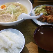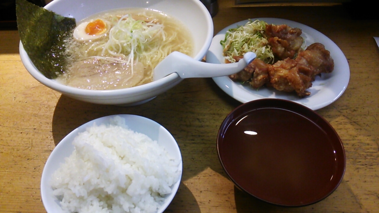 当日は塩ラーメン、唐揚げとライス・スープを頂きましたが、結構食べ応えがありました。