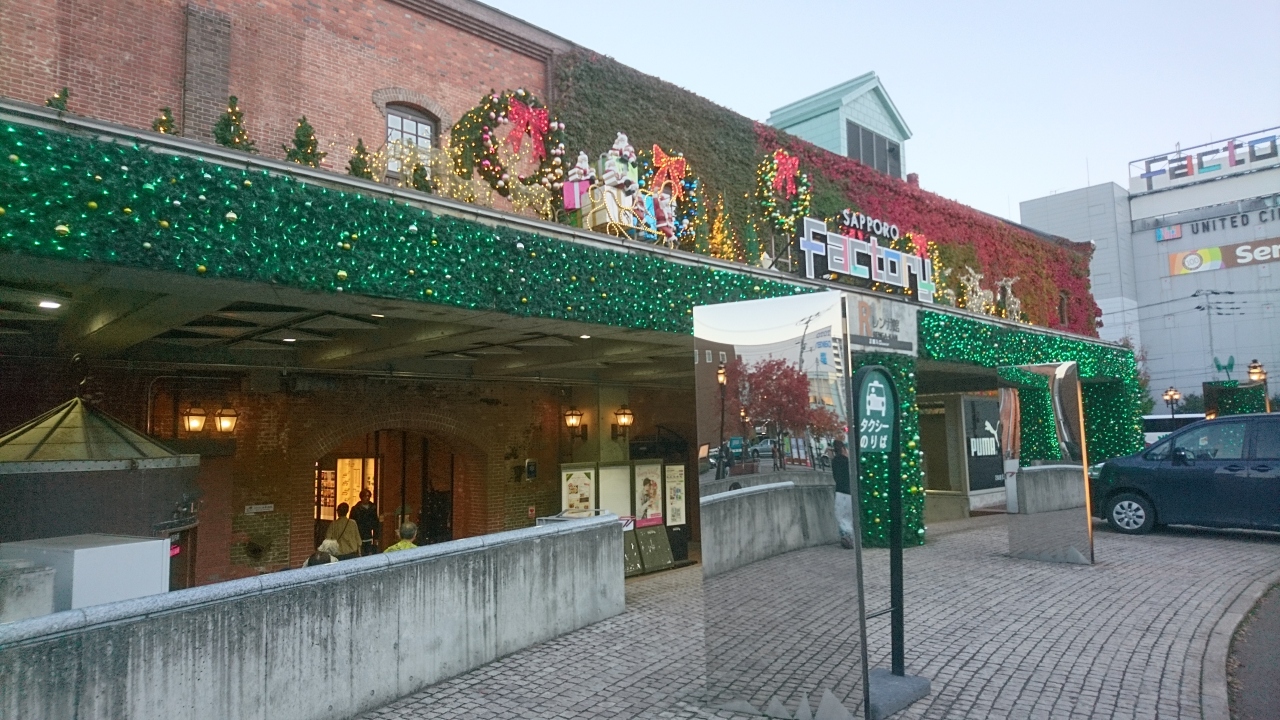 札幌麦酒のレンガの建物を使ったショッピングモール。壁にツタがからんで、夏は緑、秋は真っ赤、そして冬になってようやくレンガが姿を現します。レンガの建物は、札幌市内でも貴重で、北海道の歴史を物語っています。夜は、ライトアップしてきれいです。今の時期は、クリスマスモードに入り、雰囲気を盛り上げています。