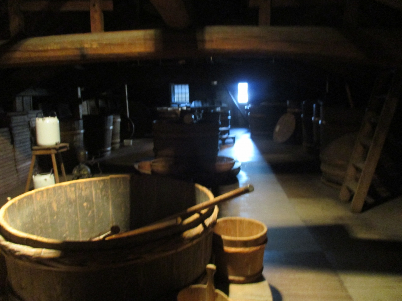 薫長酒蔵資料館は、元禄15年(1702年)に建てられた蔵で今も酒を造り続けている老舗酒蔵が平成29年7月に改装したお洒落で落ち着いた空間で、2階にある古いお酒造りの道具なども見学できました。