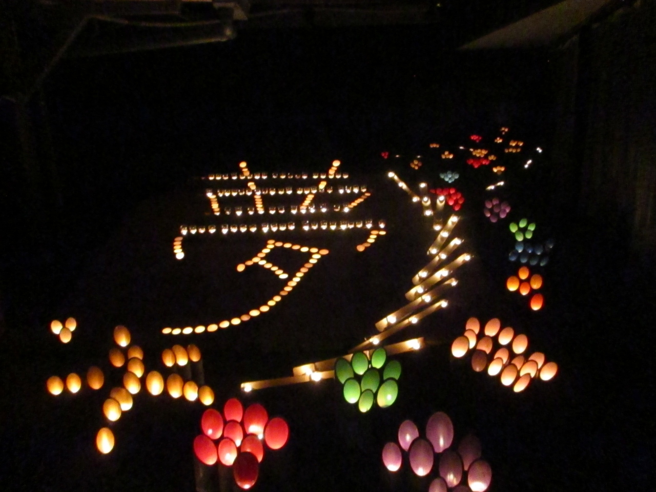 夕方になると建物内部の千年あかりの竹筒にも明かりがともされて、なかなか風情があり綺麗でした。