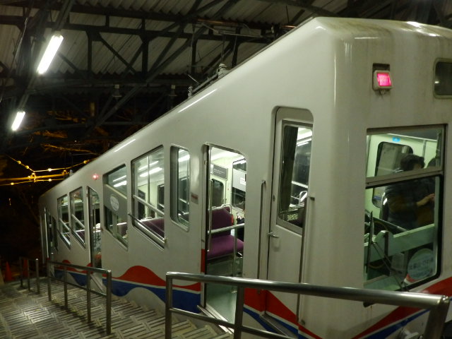 周辺のライトアップの期間に合わせてナイター営業をしていました。ケーブルカーは急こう配を9分で登ります。鹿や猿に出会うこともあるとか。かなりの急勾配なので、怖いくらいでした。ナイター営業の期間は、頂上からの下りの便では、社内の消灯を消して、外の光輝く夕景を見せてくれました。