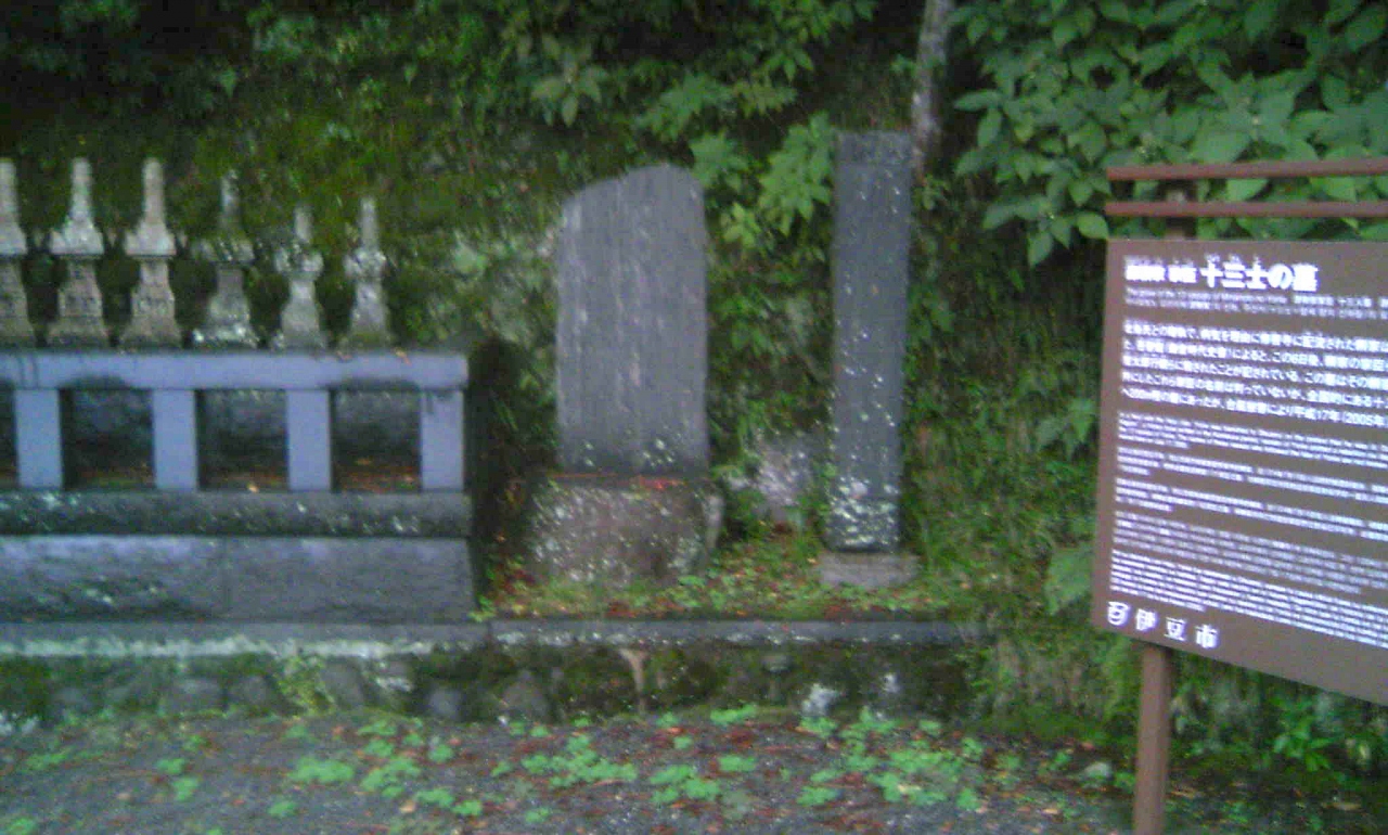 その近くにある、頼家の家臣たちのお墓。小型の墓石が13個、横一列に並んでいます。