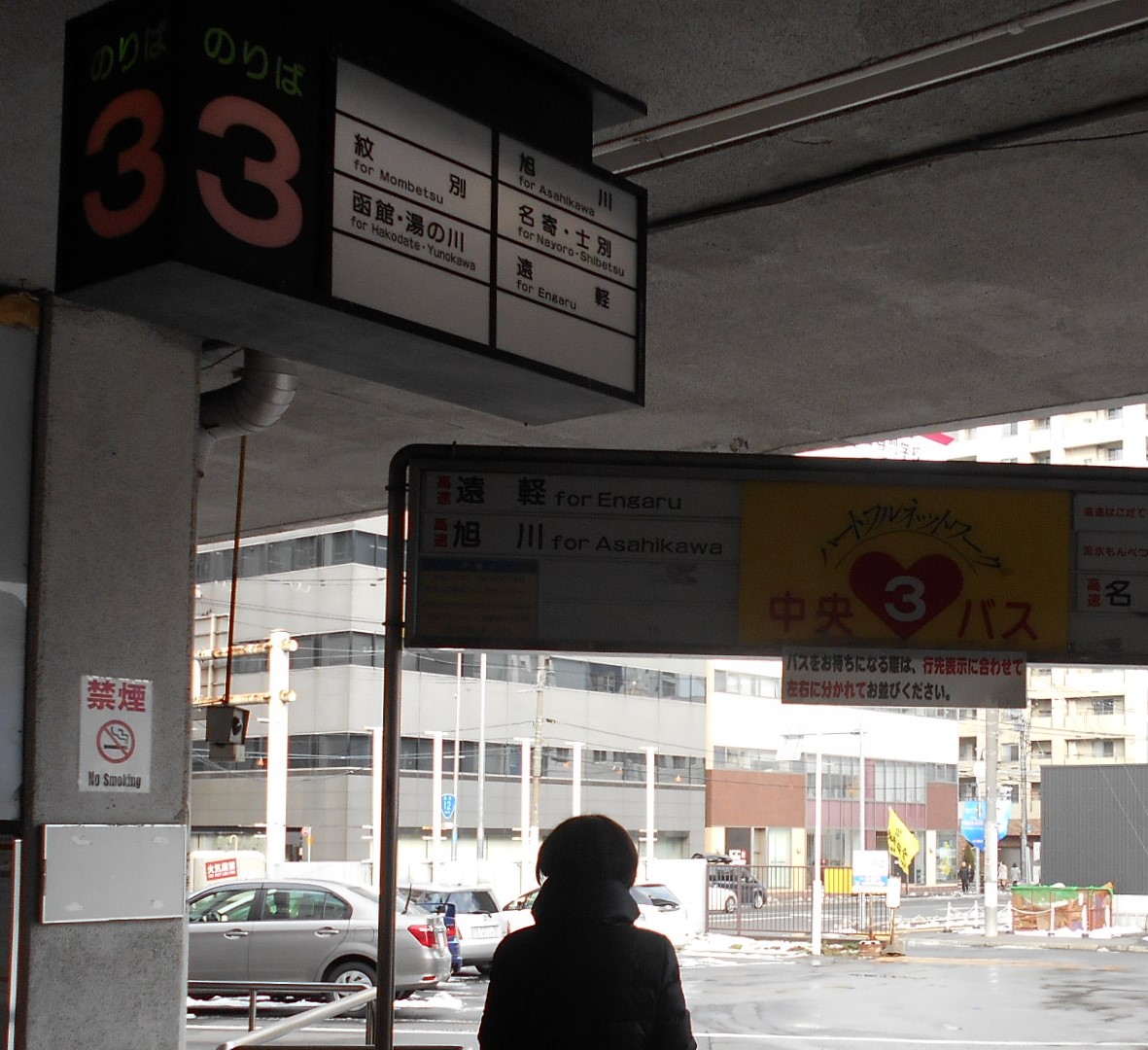 旭川まで高速バスを利用した。日曜昼過ぎ、きっとバスはガラガラだと思ったら札幌駅で満席になり、補助席。次のバスにしようとしたら運転手に次のバスも無理だろうと言われ、止む無く、補助席で旭川まで。椅子は悪いし、イヤホン、コンセントも使えずで、おまけにトイレに行きたいと言う女も居て、散々のバス旅となる。友人に聞くと週末は混むそうで、乗るなら札幌駅からが良いと思う。