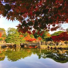 さすが、井伊家の庭園なだけありますが、それをちゃんと手入れを続けているからこんな素晴らしい紅葉を楽しむ事が出来るわけですしね。 大きな池(魚躍沼というらしい)や松の木、もみじなどが良い仕事してる感じです。 違う季節にも訪れてまた違う景色も見てみたいな。