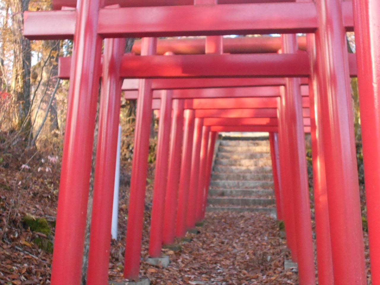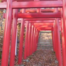 赤い鳥居が何段にも重なってあるので目を引く神社です。