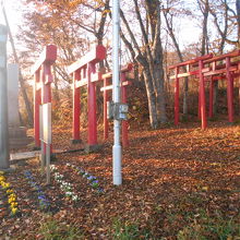 東富士五湖道路の山中湖ICを出て山中湖方面に進むと右手に見える稲荷神社です。