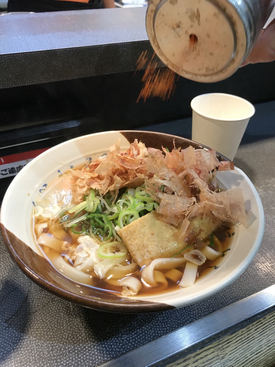 新幹線のホームにあり、有名店ですが、初めて利用しました。下りホームにもあります。立ち食いで、食券を買って利用します。朝7時に利用しましたが、ひっきりなしに来店がありました。男性客の利用が多く、女性1人では抵抗がありますが、優しい味で出汁も美味しくてつゆまで全て完食しました。