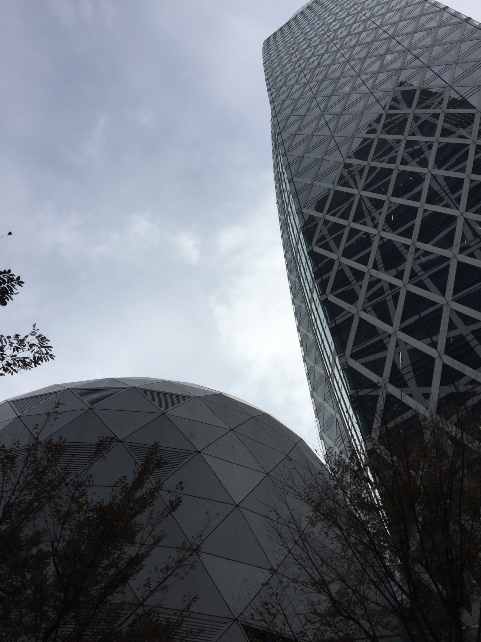 東京モード学園コクーンタワーです。ひと際目を引く奇抜な建物です。ファッション、医療、コンピューターの専門学校になっています。繭がコンセプトになっています。関係者以外は入れないのが残念ですが、本屋とコーヒーショップはOKです。