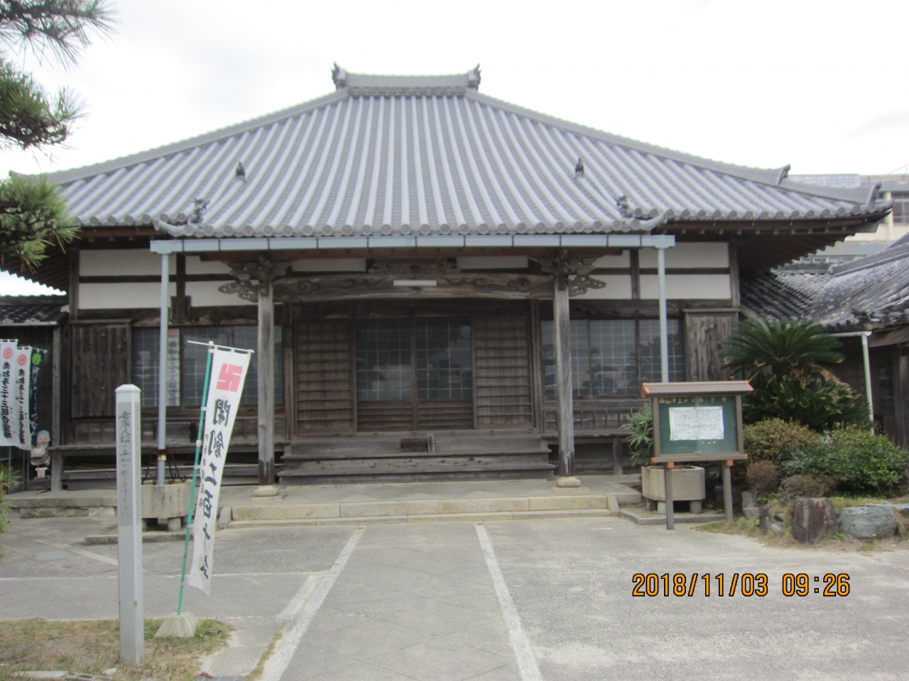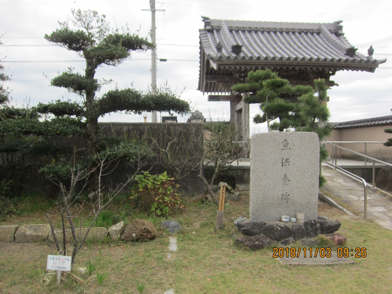 西山浄土宗松原山のお寺です。 ご本尊は、阿弥陀如来です。 このお寺は、伊勢湾沿いの国道の脇にあります。 山門を入ってふりかえると、伊勢湾が広々と見渡せます。 境内には魚供養碑が建立されていました。 本堂・弘法堂の隣に客殿があり、こじんまりとしたお寺でした。
