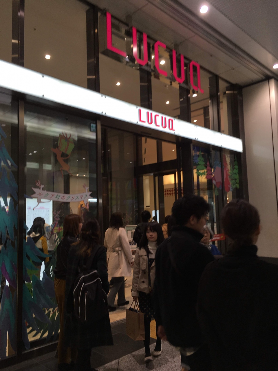 JR大阪駅ビルのルクア。大きなビルだけあって、いろいろなお店が入っています。ただ、飲食店を中心に混雑がものすごいです。待ち合わせの名所にもなっている時空の広場は半屋外のせいか、暖房の風が最小限で、この時期は風が心地よいです。